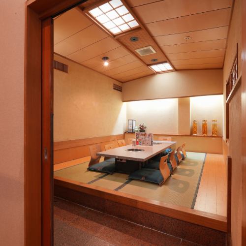 お座敷とテーブル席の間を仕切ることもできる。お座敷は大人数の宴会も楽々行える広々スペース。
